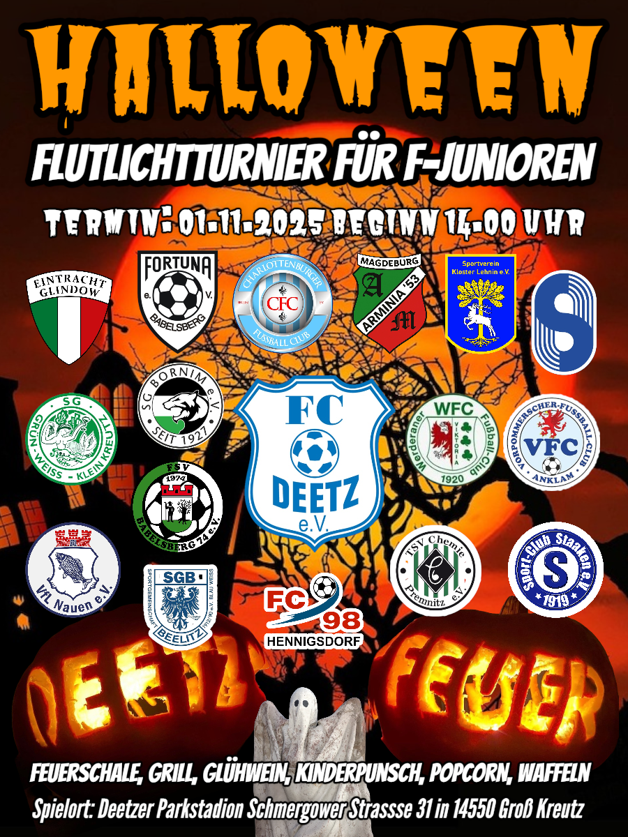 Der FC Deetz freut sich auf einen unvergesslichen Fußballtag mit Spannung, Spaß, Teamgeist und ganz viel Halloween-Flair.