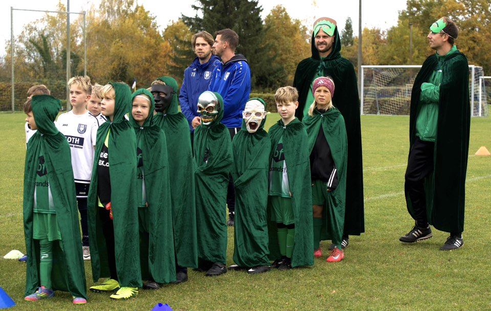 Schon beim Einlaufen sorgten die jungen Fußballerinnen und Fußballer in ihren fantasievollen Halloween-Verkleidungen für Gänsehaut-Atmosphäre. Überall auf dem Platz wuselten kleine Vampire, Geister und Monster und mittendrin der Fußball, der bei allem Spaß natürlich im Mittelpunkt stand.