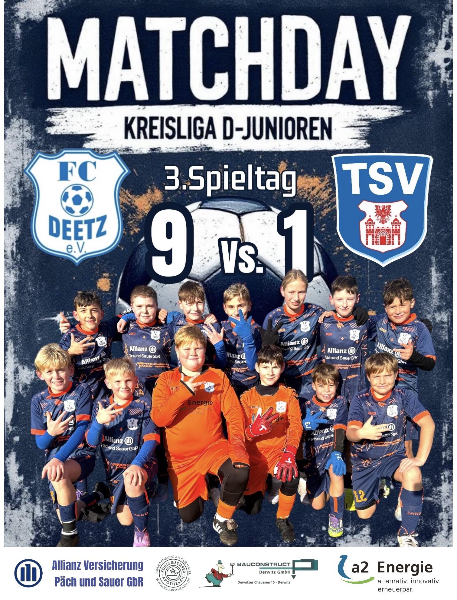 Die D1-Junioren des FC Deetz bleiben in der Kreisliga weiter auf Erfolgskurs und feiern am 3. Spieltag einen eindrucksvollen 9:1-Heimsieg gegen den TSV Treuenbrietzen. Bei eisigen Temperaturen und bester Stimmung im Deetzer Parkstadion zeigte das Team von Trainer Dennie Rufflett erneut eine starke und geschlossene Mannschaftsleistung.