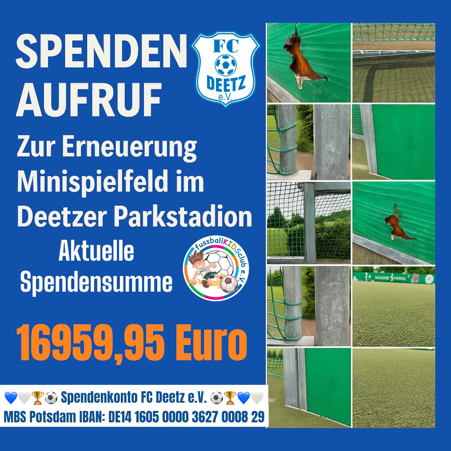 Der FC Deetz e.V. freut sich über eine großartige Nachricht: Die Mittelbrandenburgische Sparkasse in Potsdam (MBS) hat dem Verein eine Förderzuwendung in Höhe von 10.000 Euro für die dringend notwendige Instandsetzung des Minispielfeldes im Deetzer Parkstadion zugesagt.